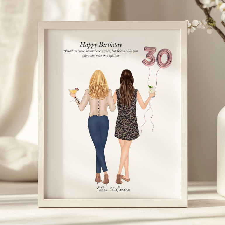 30th Birthday Gift for Her - Personalised Friendship Portrait Balloon Print