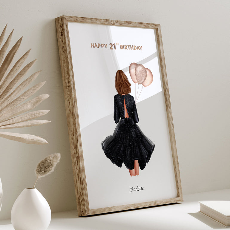 Our Customisable ANY AGE Birthday Print is a thoughtful unique gift or keepsake for your sister, friend or loved one. Perfect letterbox birthday gift . Customise hairstyles, skin colour, and dress colour. UNFRAMED PRINT.