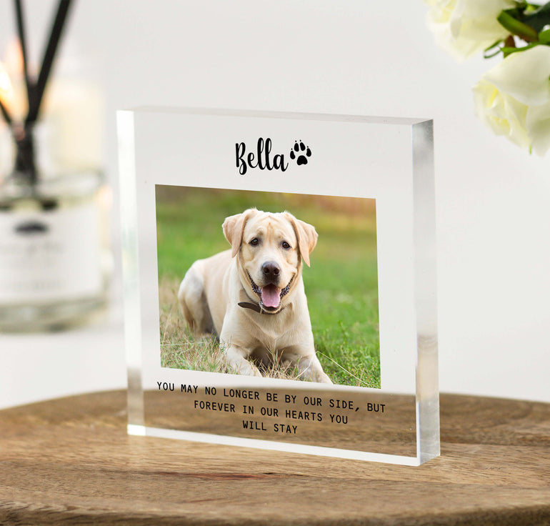 Our Customisable Freestanding Pet Memorial Photo Acrylic Block makes a unique thoughtful photo keepsake gift.