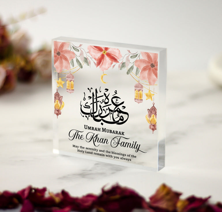 Umrah Mubarak Personalised Floral & Lantern Design - Acrylic Block