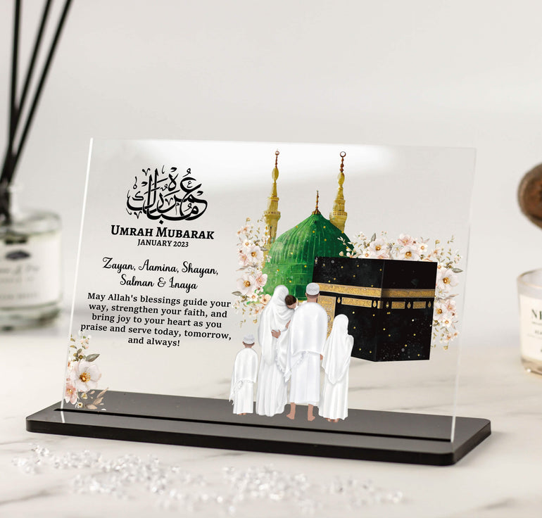 Celebrate the spiritual journey and blessings of Umrah with our exquisite Umrah Mubarak Gift for Family - a beautiful and personalized acrylic plaque. This unique and thoughtful gift is perfect for commemorating the special occasion of Umrah, as well as other Islamic celebrations such as Eid Mubarak or Ramadan Mubarak.