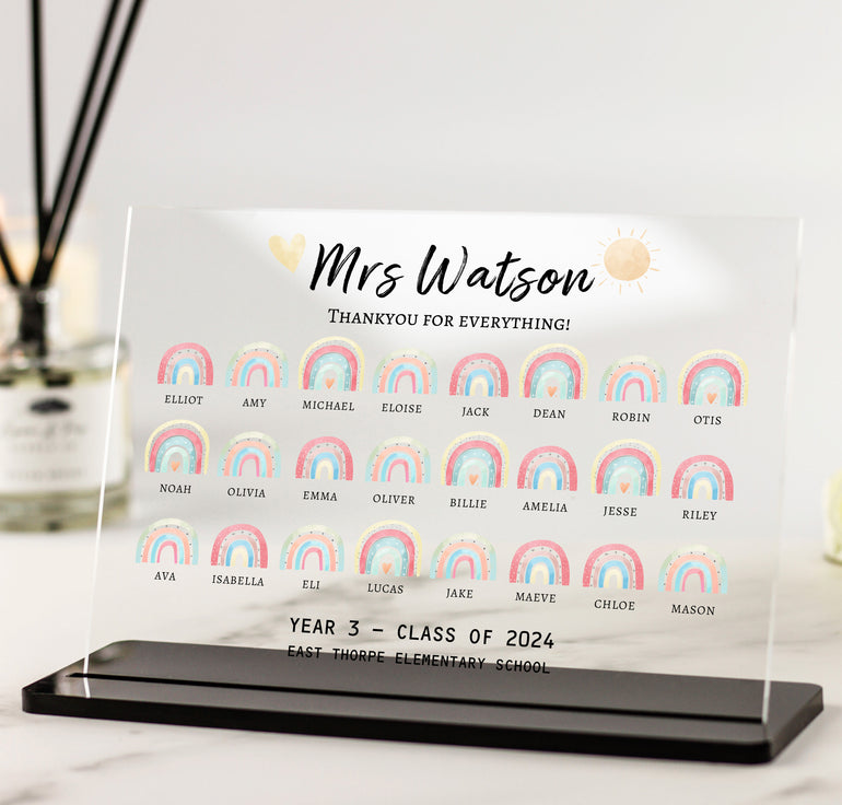 Teacher Thankyou You Gift From Class 'Rainbow v2' - Acrylic Plaque