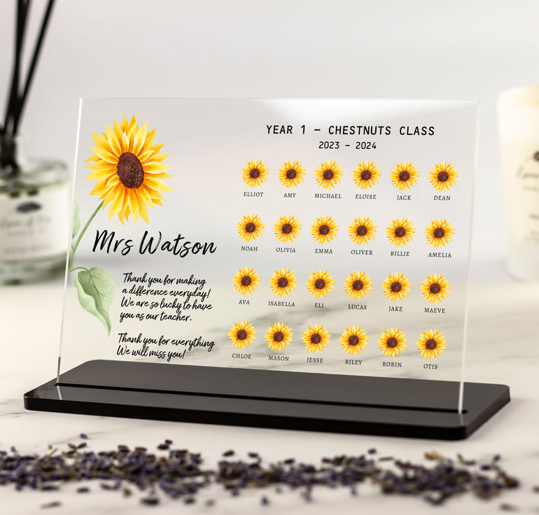 Teacher Thankyou You Gift From Class 'Sunflower Version' - Acrylic Plaque