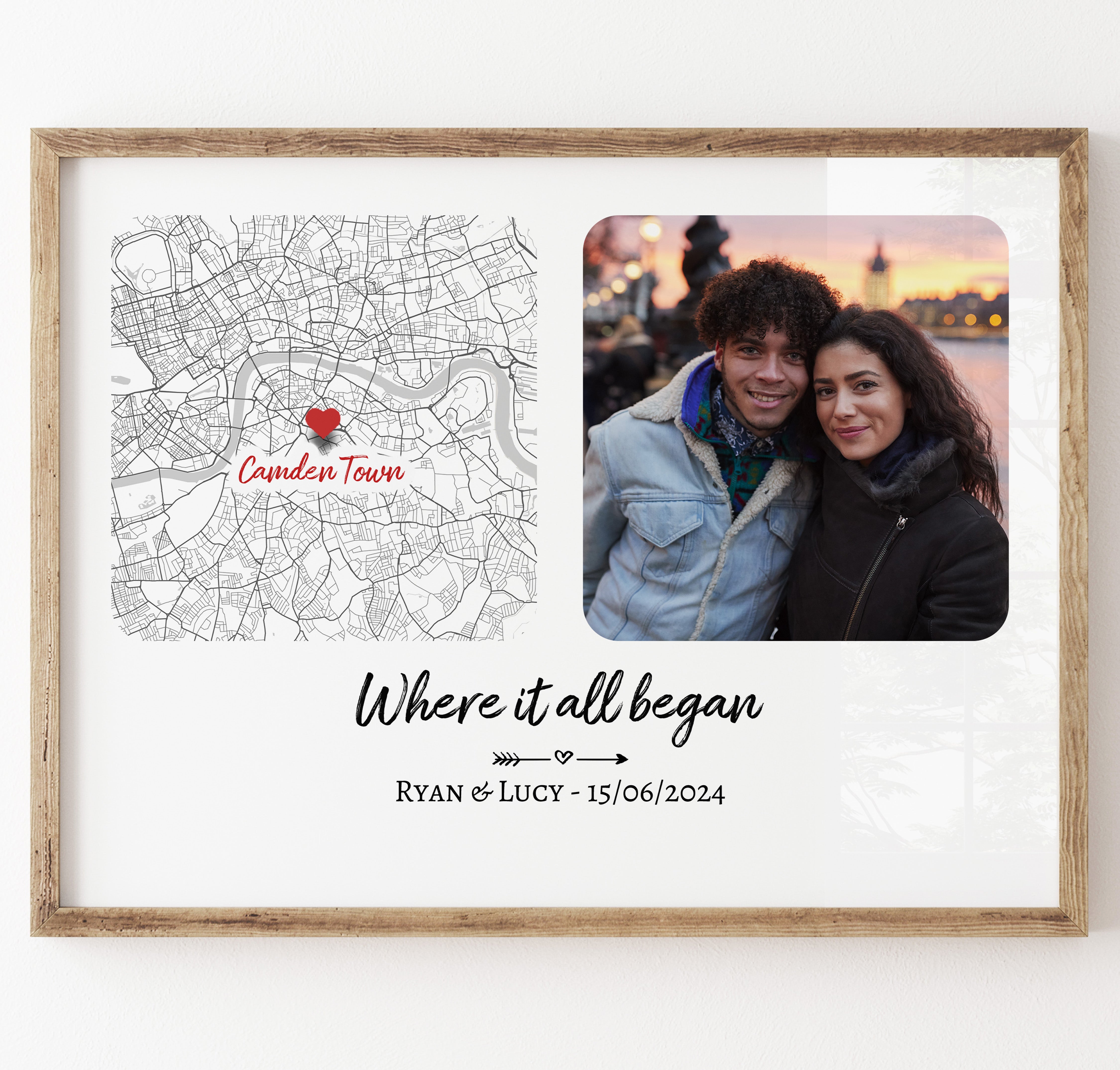 The personalised map prints illustrate the place where your journey began and serve as a poignant reminder of where it all started. Showcasing this print in your home keeps that memory alive and brings a unique element to your decor.
