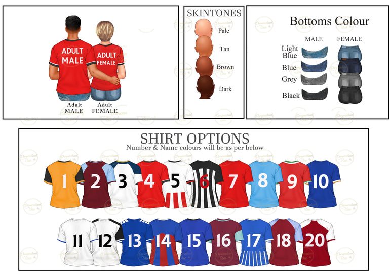 Printed Sizing Chart - Frame not included. Image is for illustration purposes only. Please note that colours may vary depending on your screen settings