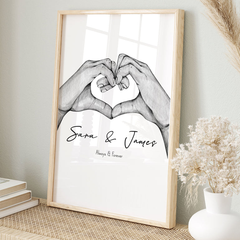 Couples Heart Shape Hands 'Always & Forever' - Personalised Print
