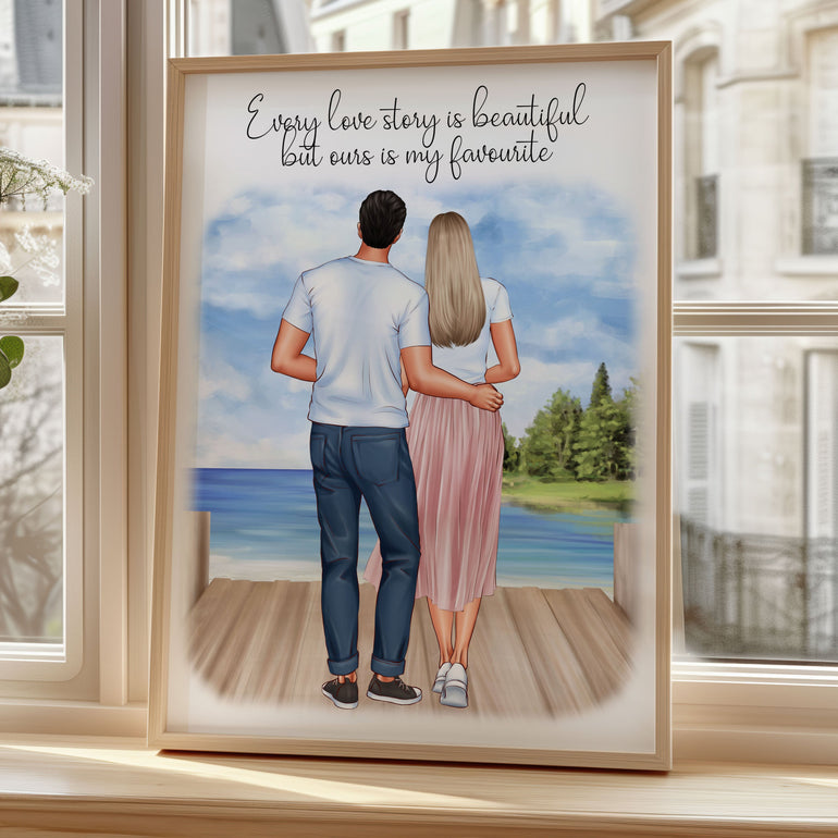 Our Customisable Couples Print is a thoughtful unique gift or keepsake for Couples, Boyfriend/Girlfriend, Male Best Friend, Wife/Husband. Perfect for birthdays, Galentines, Christmas, Anniversary, Engagement, New Home or simply a Just Because Gift. Customise hairstyles, skin colour, clothing and shoes with this beautiful quote. UNFRAMED PRINT.
