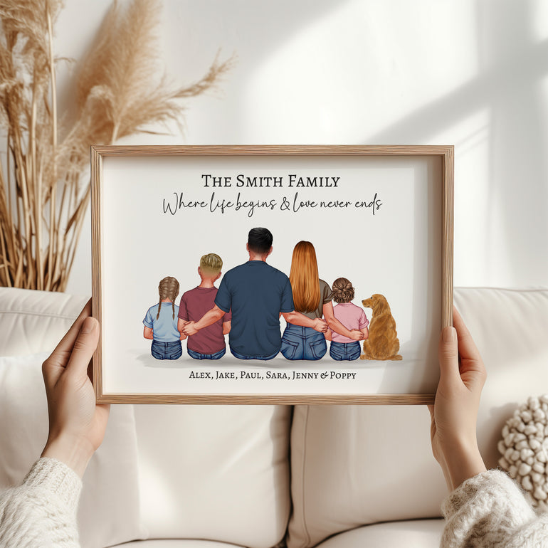 Designed to celebrate every family — blended, step, large, small, or including your much-loved pets — this personalised family portrait print is a meaningful piece of artwork you can treasure forever.