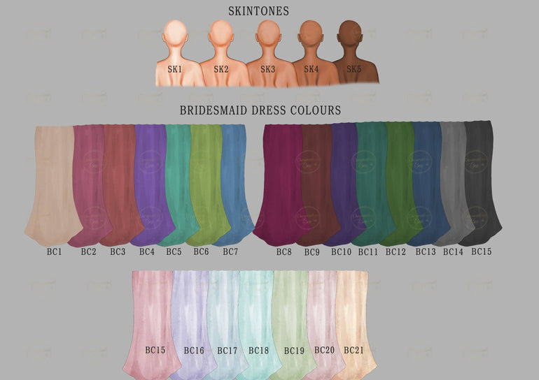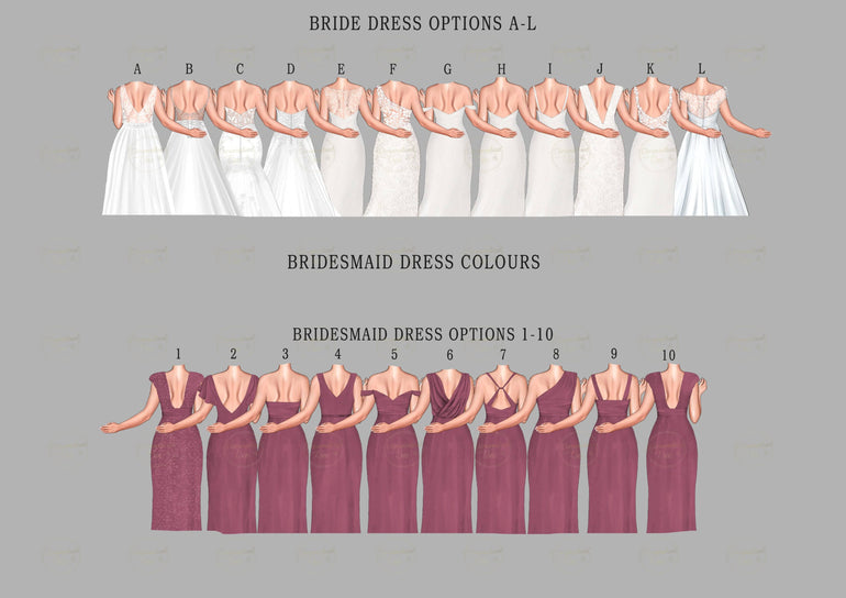 Customise Names, Hair, Outfits and Skin colour to create a unique keepsake gift for your bridal party. -WORDING CAN BE CUSTOMISED