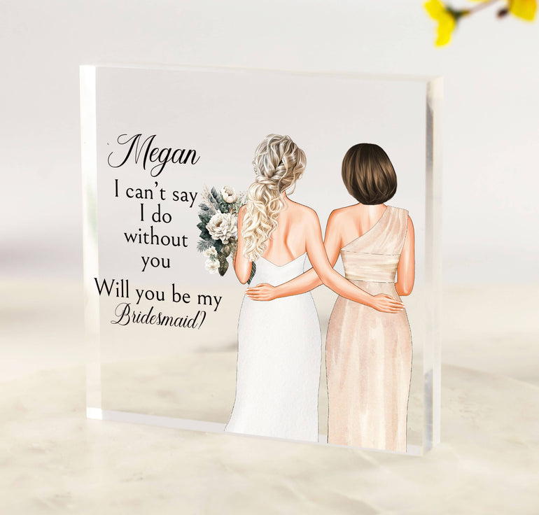 Personalised Bridesmaid Proposal Gifts - Personalised Bride and Bridesmaid/Maid of Honour/Mother of Bride Acrylic Block V2