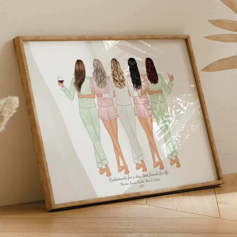 Personalised Bridesmaid Print, Bridesmaids Pj's Print