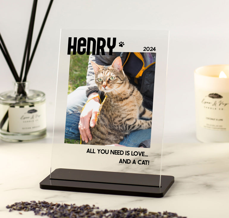 'All You Need is Love... And a Cat!' - Acrylic Photo Plaque