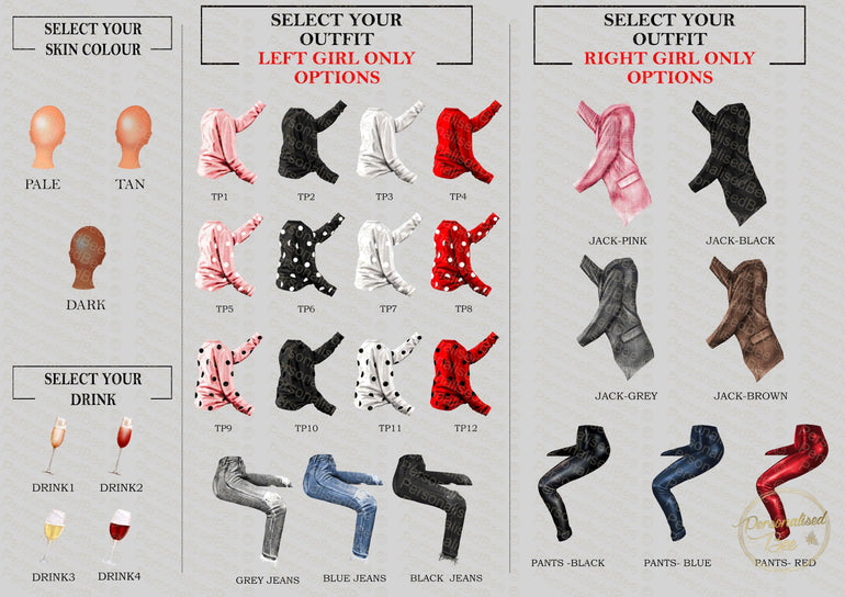 Our Customisable 2 friends Best Friend Print is a thoughtful unique gift or keepsake for you and your friend. Perfect gift for Valentine's Day, Birthdays and more. Customise hairstyles, skin colour, clothing and drinks. UNFRAMED PRINT.