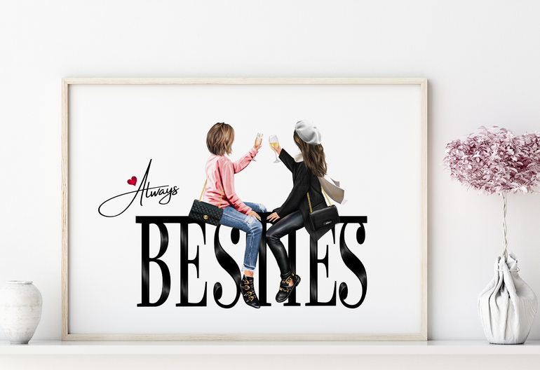 2 Friends 'Always Besties' - Personalised Best Friend Print