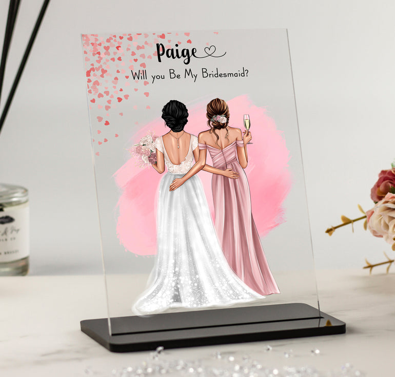 Bridesmaid Personalised Proposal Gift - Acrylic Plaque with Stand