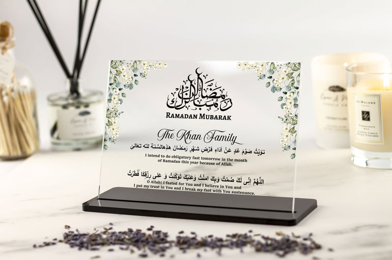 Our Personalised Ramadan Mubarak Acrylic Plaque Gift for Muslim Couples, Family and Friends is the perfect and most thoughtful unique gift. With this beautiful Dua for fasting just add the custom names and we will create your custom gift or keepsake that can be placed anywhere in the home.