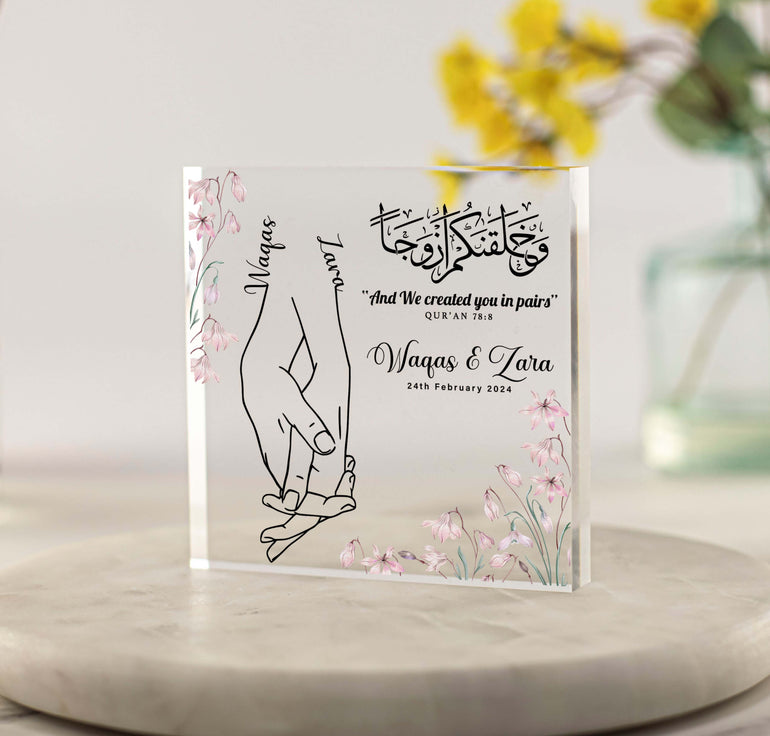 Personalised Islamic Gift for Couple Acrylic Block - Ideal for Weddings, Nikkah Mubarak, Valentine's Day