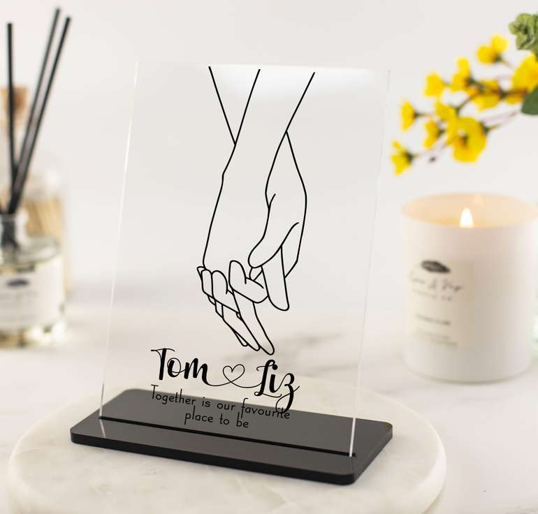 Personalised Line Art Hands Art Acrylic - Printed directly on clear acrylic, our range of line art illustrations adds a modern contemporary look to the home.