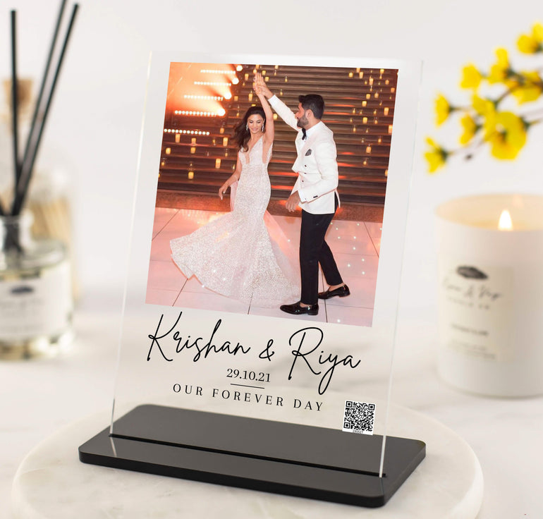 Capture the joy of your first dance at your wedding forever with this beautiful Couples Wedding Photo Memory Plaque. Showcasing your special photo and memories in a stunning A5 acrylic plaque, you and your loved one will be able to relive the joy and emotion of your special moment for years to come. Plus, with video hosted for the next sixty years, you'll be able to share your beautiful memories even with future generations! This timeless keepsake is the ultimate way to preserve your joyous memories. With its high-quality construction and sixty year longevity, you and your family can treasure the beauty and pleasure of your wedding day for years to come.