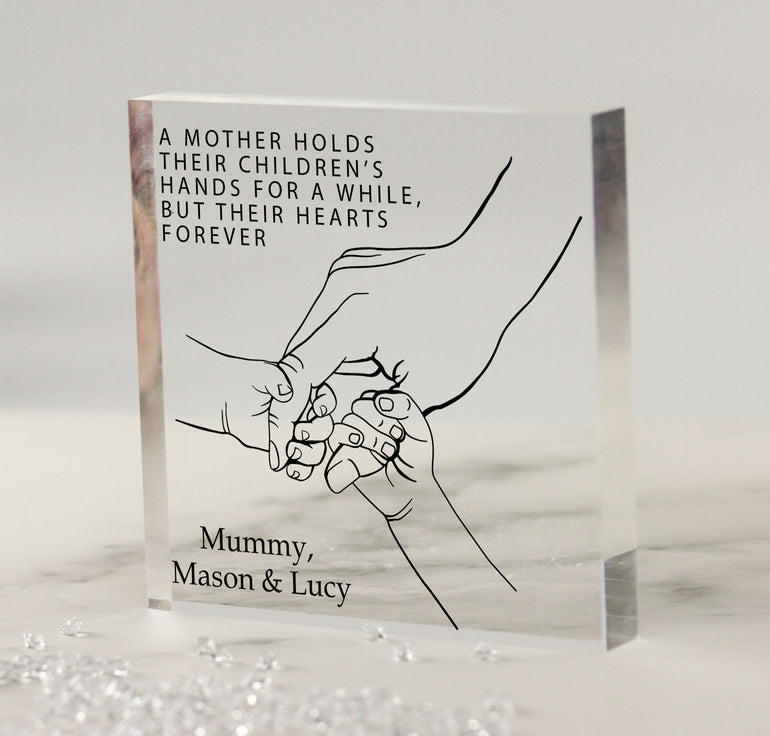 Show Mom how much she means to you with our Customisable Mother and Children Holding Hands Acrylic Block! This freestanding illustration is a perfect personalized gift for birthdays, Mother's Day, Christmas, or just because. Customize with your own names for a heartfelt gesture.
