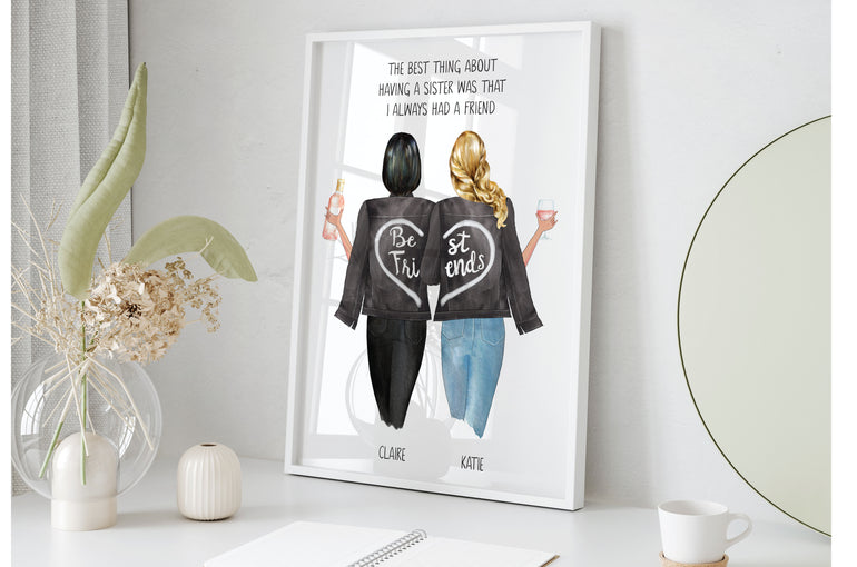 Friendship Print, Bestie Gift, Customisable, 2 Friends Prints, 60+ Hairstyles, Changeable quotes, Birthday Friends