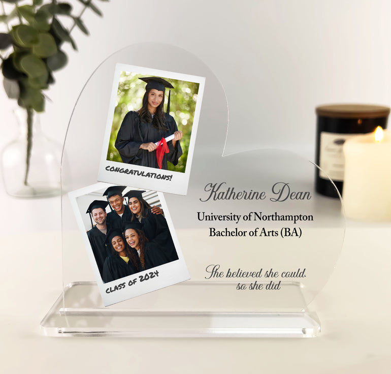 Graduation Photo Polaroid Plaque Gift for Graduate - Heart Acrylic Plaque