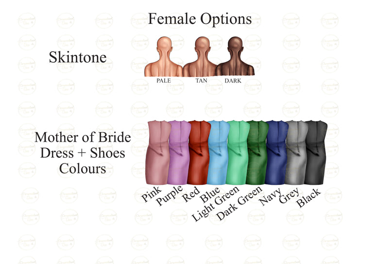 Customise skin tone, hair & outfit on this elegant wedding keepsake for mum. Perfect for dress hangers or gifts from the bride. Add names & date.