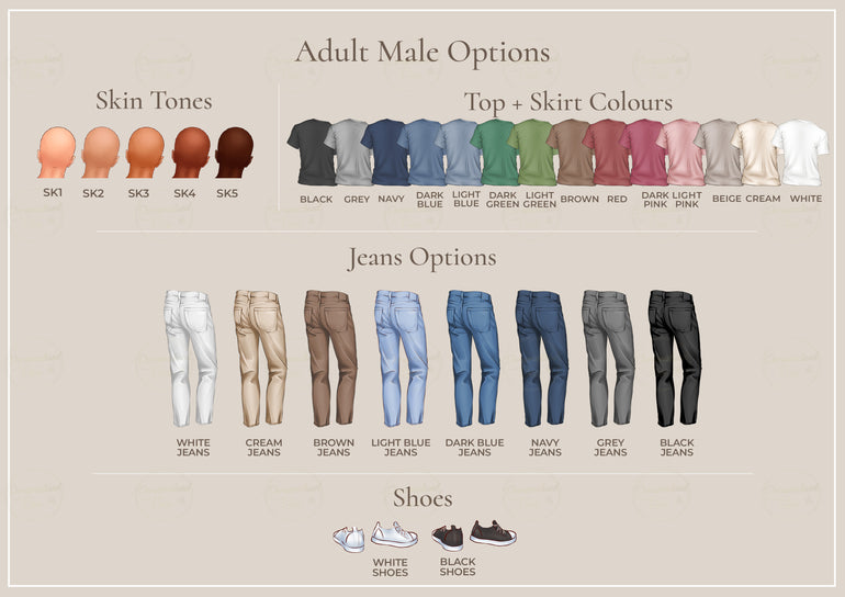 • Customise hairstyles, hair colour, skin tones and clothing to match the couple