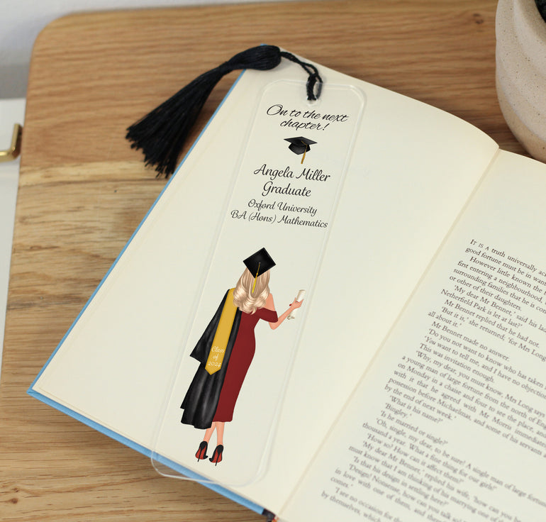 Celebrate her hard work and dedication with a thoughtful and personalised graduation gift: a custom bookmark! This unique accessory is perfect for the avid reader in your life, providing a functional and stylish way to mark her place in her favourite books.