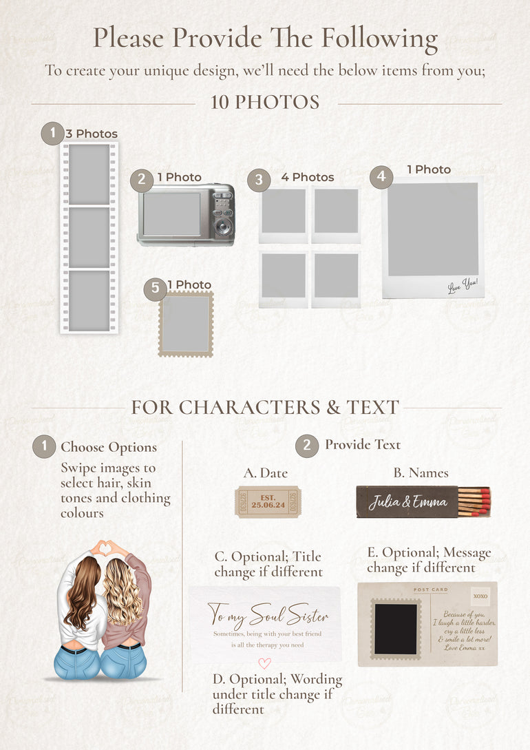 Capture your most meaningful moments together in a beautifully designed matchbox-style friendship print.