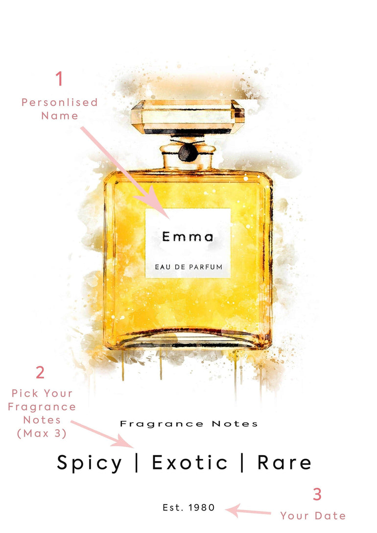 Personalised Perfume Print, Best Friend Gift, Bridesmaid Gift, Gift for Her, Xmas Gift, New Home gift, Fashion Print, Dressing Room Print, Unique