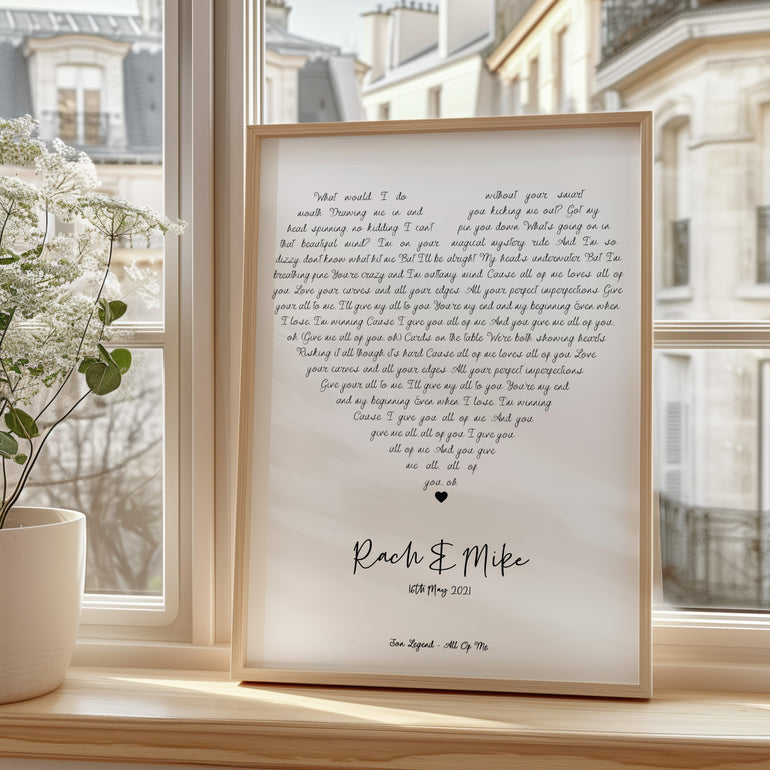 Heart Shaped Song Lyrics - Personalised Print
