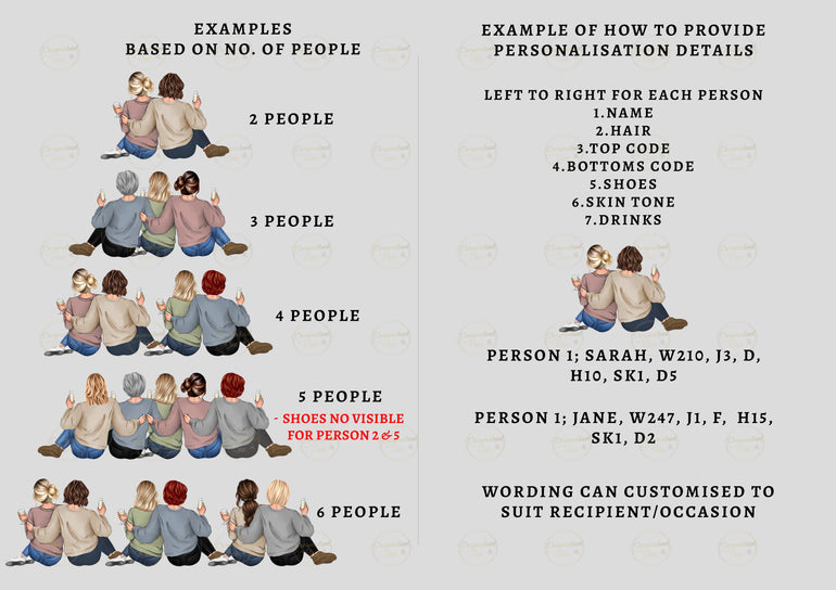 Custom illustrated friendship group (up to 6 people included)